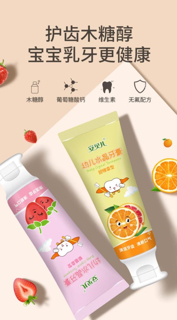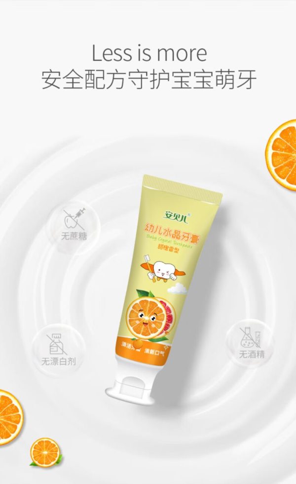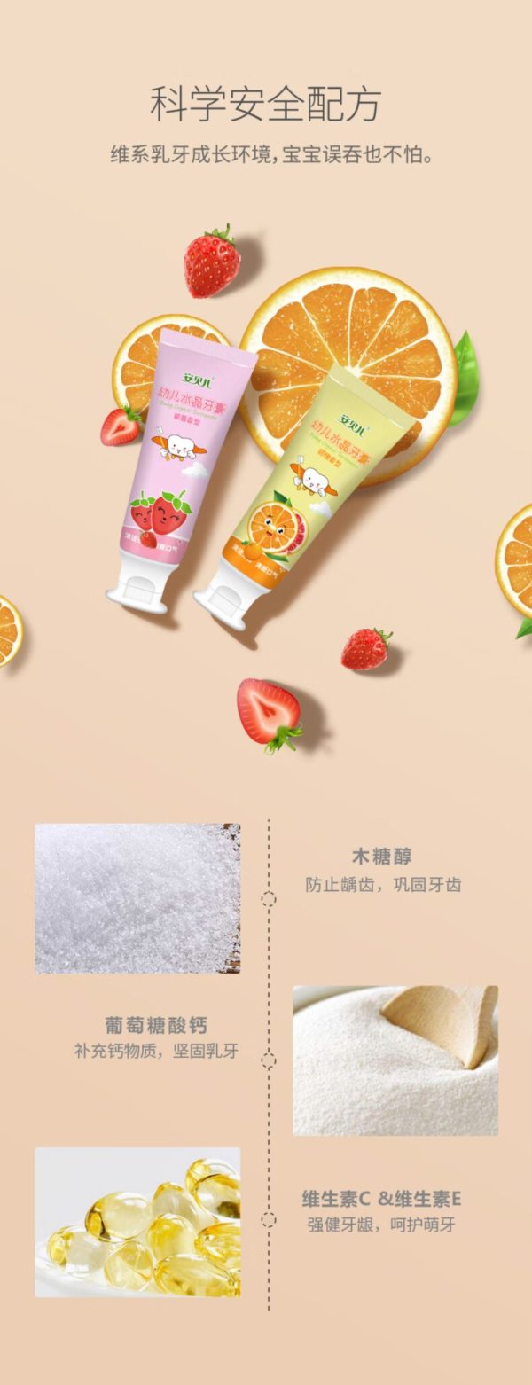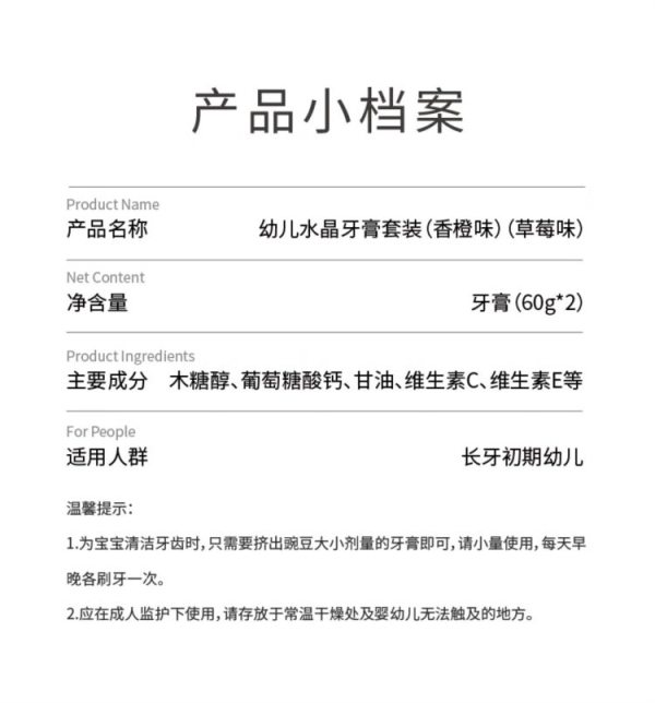 商品名称:安贝儿幼儿水晶牙膏 60g 【2只装牙膏】草莓+香橙 (单位:组)