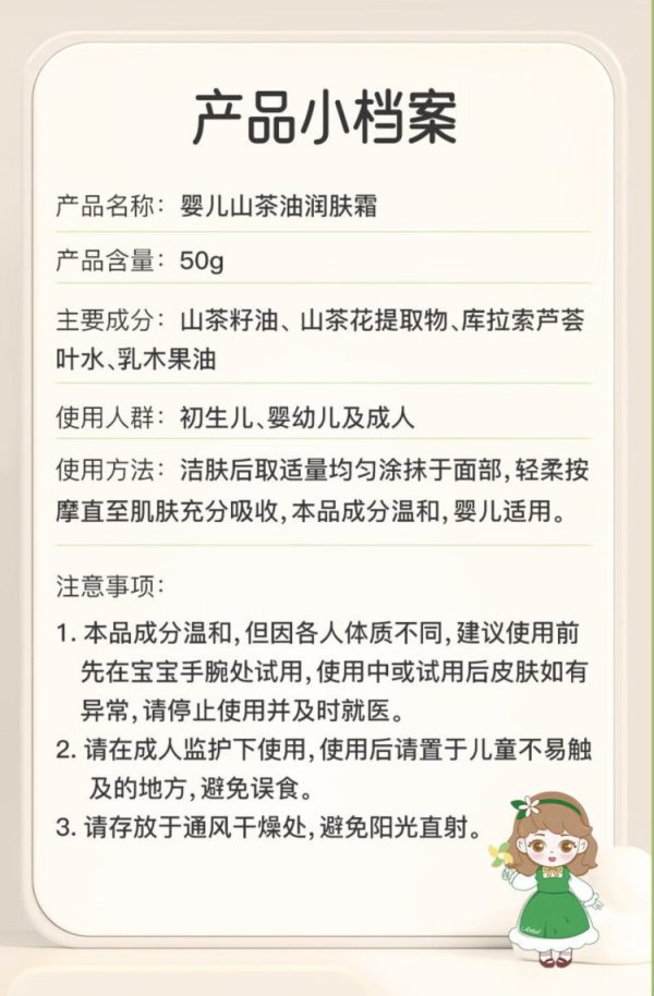 商品名称:安贝儿婴儿山茶油润肤霜50g (单位:盒)