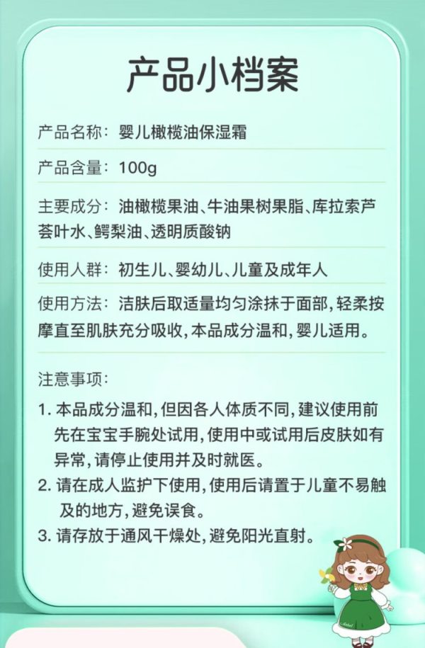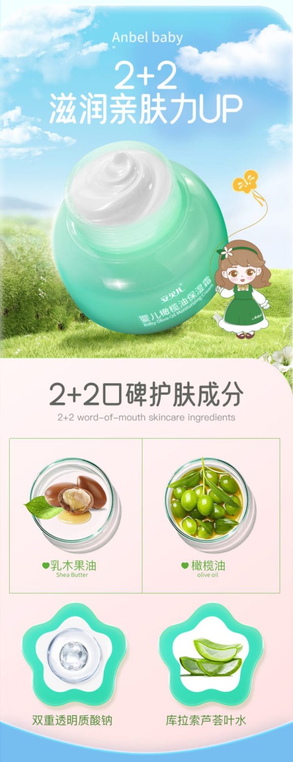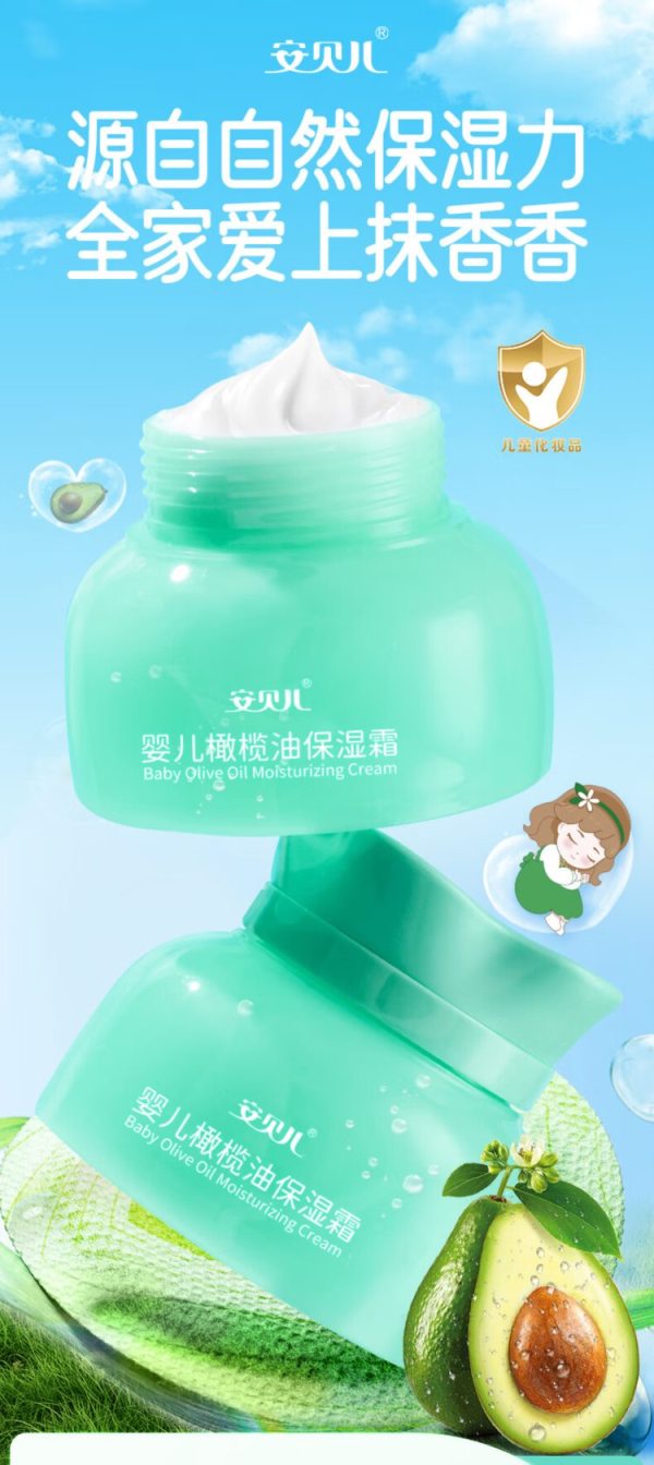 商品名称:安贝儿婴儿橄榄油保湿霜大瓶装100g (单位:盒)