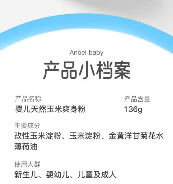 商品名称:安贝儿婴儿金银花清凉爽身粉 (单位:罐)