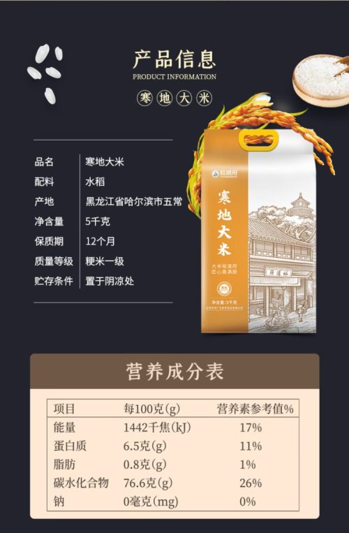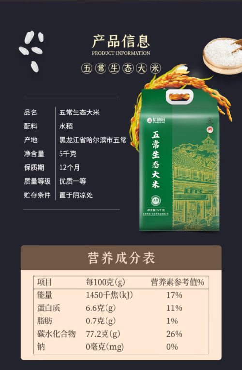 商品名称:裕道府(匠心系列)五常有机大米(双层袋真空装)5kg