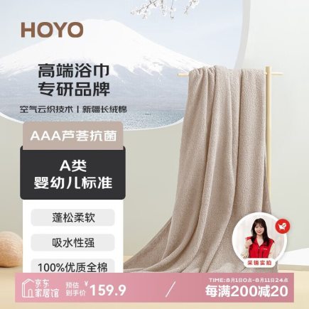 商品名称:HOYO浴巾纯棉 A类高档纯棉洗澡浴巾成人 吸水速干游泳大毛巾 70*140cm