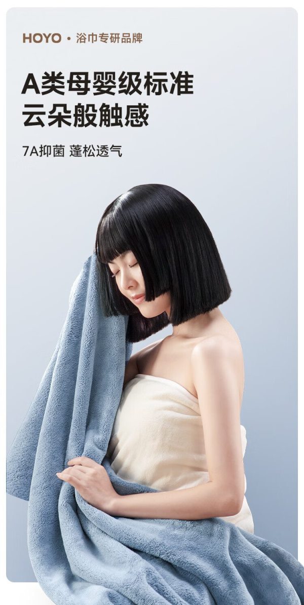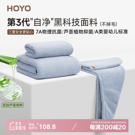 商品名称:HOYO毛巾浴巾干发帽三套装 A类成人高档吸水7A抗菌套装 千草色