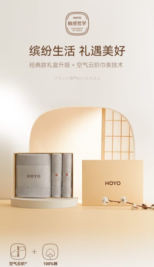 HOYO日本毛巾浴巾三套礼盒装 浴巾成人吸水速干女纯棉擦脸毛巾男士大 乳白色(毛巾+浴巾)