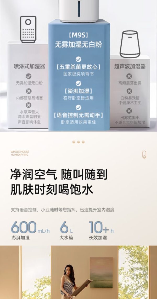 商品名称:亚都SZ650-M9S无雾加湿器 白色