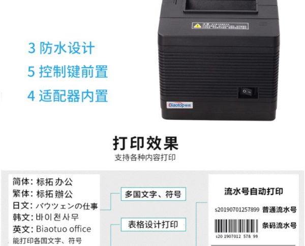 商品名称:标拓 (Biaotop) DT-346PRO 热敏打印机厨房酒店票据小票打印机 80mm小票机 串口
