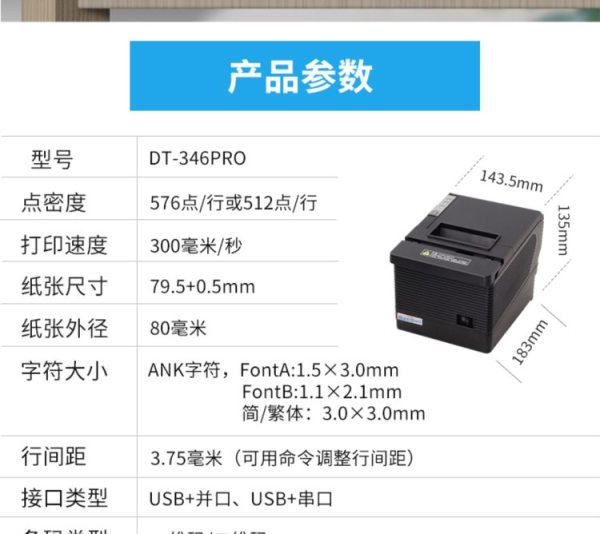 标拓 (Biaotop) DT-346PRO 热敏打印机厨房酒店票据小票打印机 80mm小票机 串口