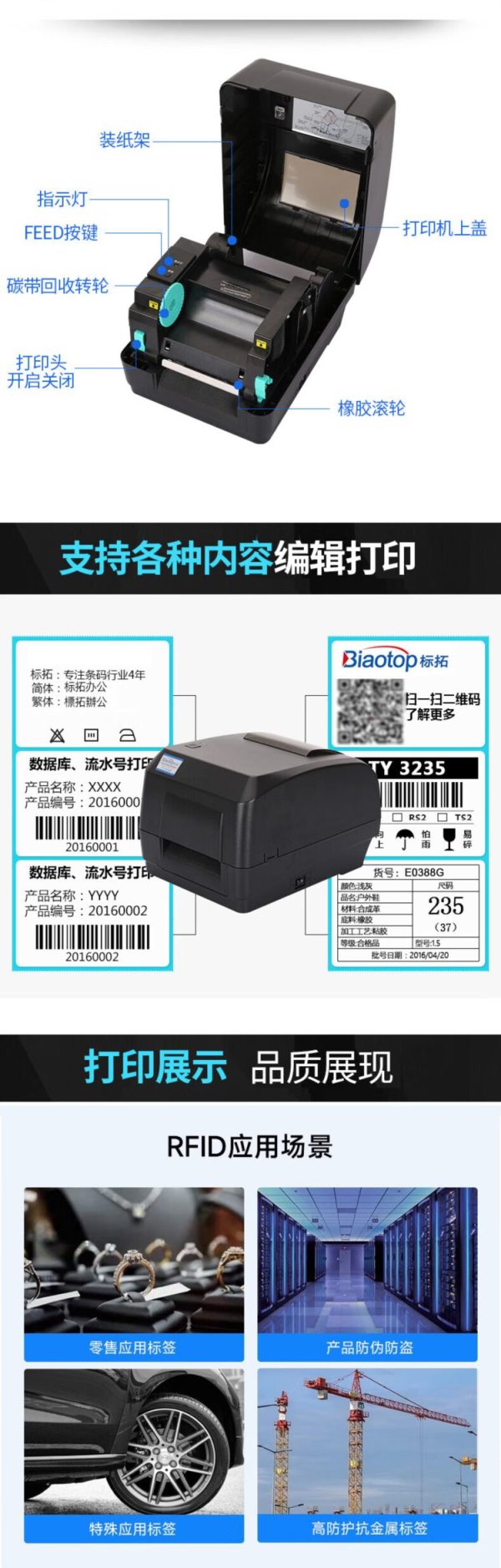 商品名称:标拓TT-820B(RFID版本) 超高频RFID电子标签打印机、条码打印机 分辨率300DPI