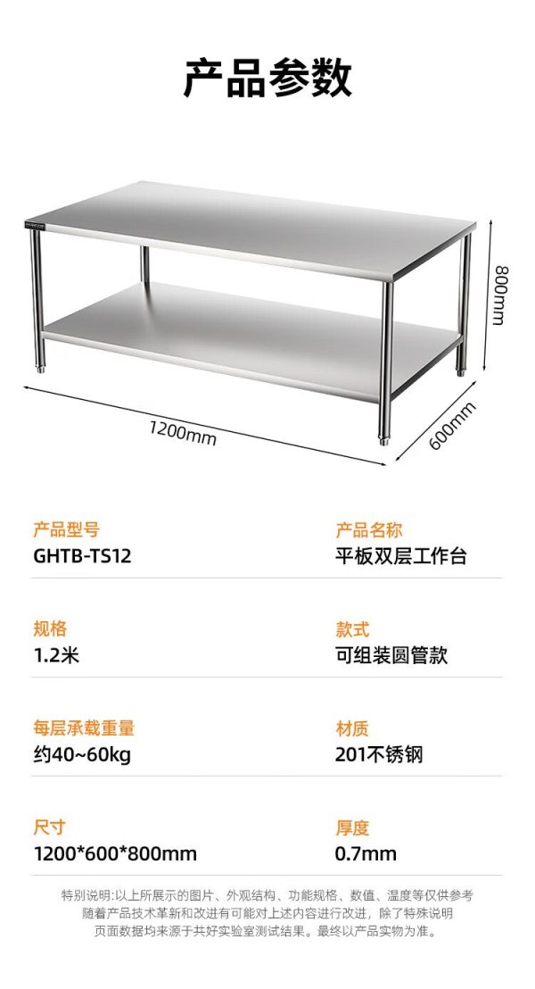 商品名称:共好酒店饭店厨房工作台商用 家用不锈钢打荷台 饭堂平板双层收纳操作台 GHTB-TS12