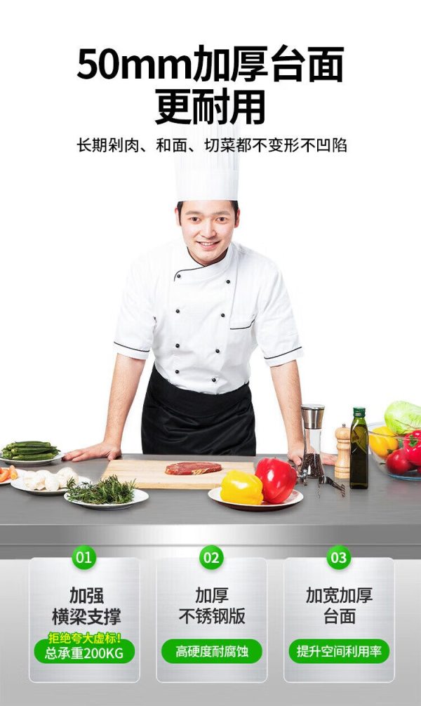 共好酒店饭店厨房工作台商用 家用不锈钢打荷台 饭堂平板双层收纳操作台 GHTB-TS12