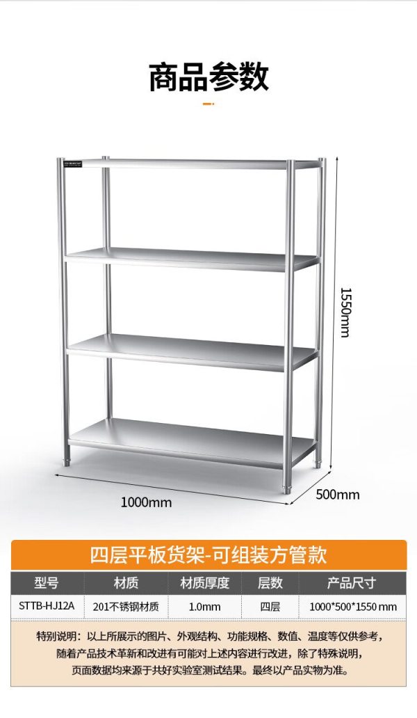 商品名称:共好 不锈钢平板货架商用 多功能四层仓库置物架 酒店饭店厨房拆装式储物架 GHKT-PJ04