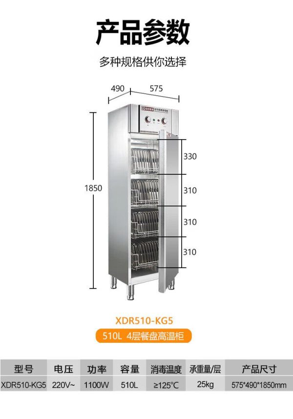 商品名称:共好XDR510-KG5 高温消毒柜 单门全餐盘 操控方式机械式