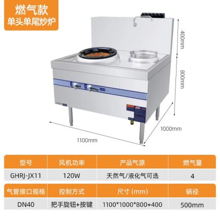 商品名称:共好燃气单头单尾小炒灶(经济款1.0)GHRJ-JX11