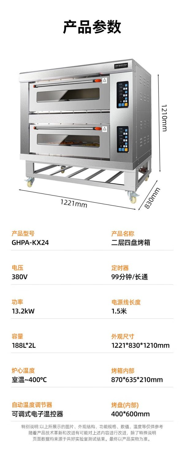 商品名称:共好二层四盘商用烤箱 全自动大型蛋糕面包披萨炉 2层4盘月饼电热大烘炉 GHPA-KX24