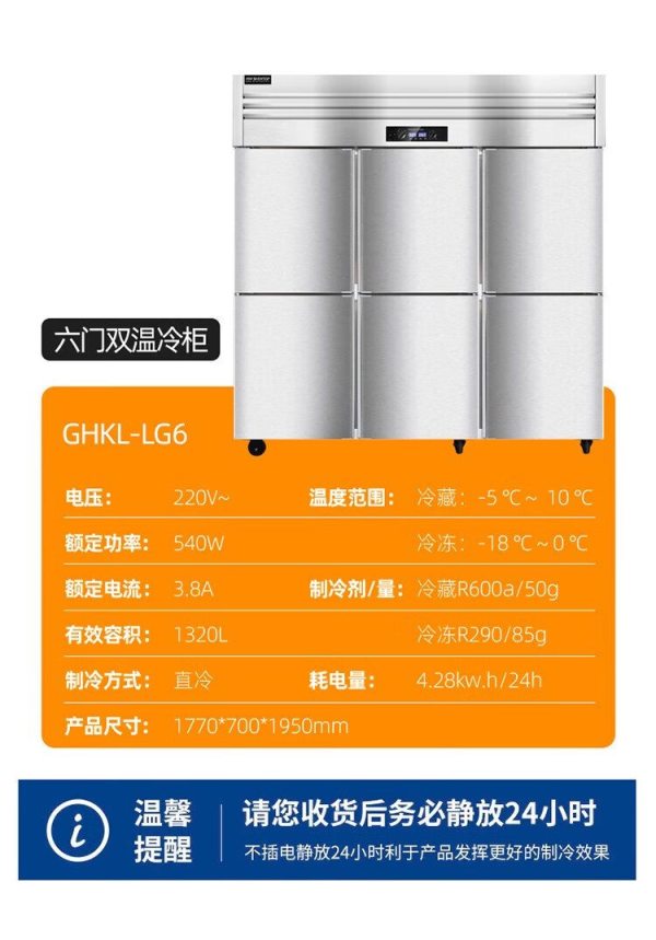商品名称:共好 GHKL-LG6 六门双温冷柜 有效容积1320L 额定功率540W