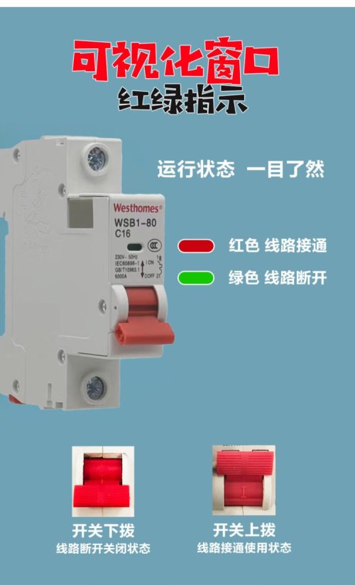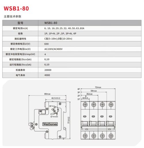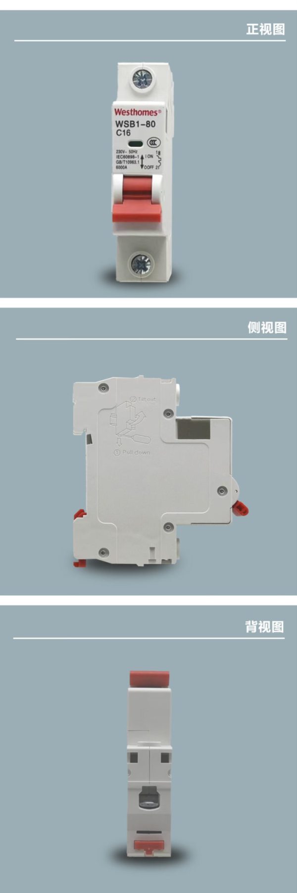 商品名称:西屋(Westhomes)WSB1-80 1P C16A 空气开关 小型断路器(单位:个)
