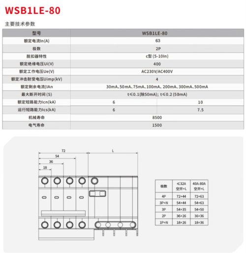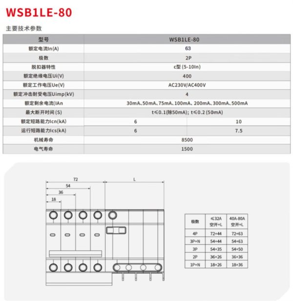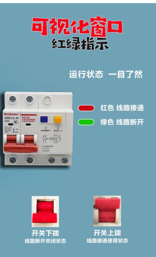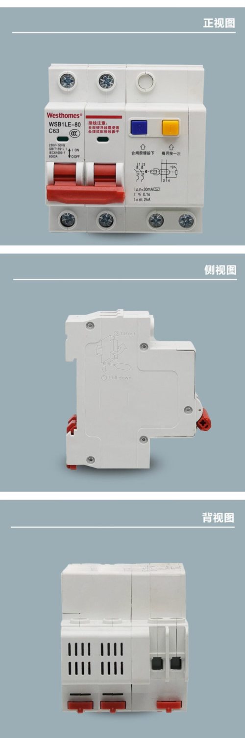商品名称:西屋(Westhomes)WSB1LE-80 2P 63A 空气开关 小型漏电断路器(单位:个)
