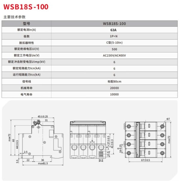 商品名称:西屋(Westhomes)WSB18S-100 1P+N 63A 空气开关 电表外置断路器(单位:个)