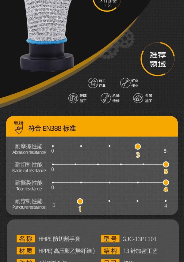 商品名称:象管家 GJC-13PE101 5级HPPE防割手套 灰色 均码 (计价单位:双)