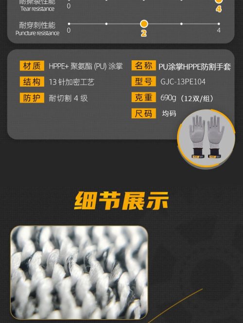 商品名称:象管家 GJC-13PE104 PU涂掌HPPE防割手套 (计价单位:双)