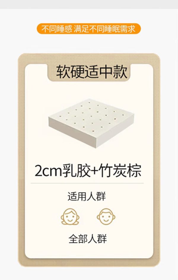 商品名称:自然巢 舒睡床垫 家用 宿舍 竹炭棕床垫 白色 厚10cm 150x200cm