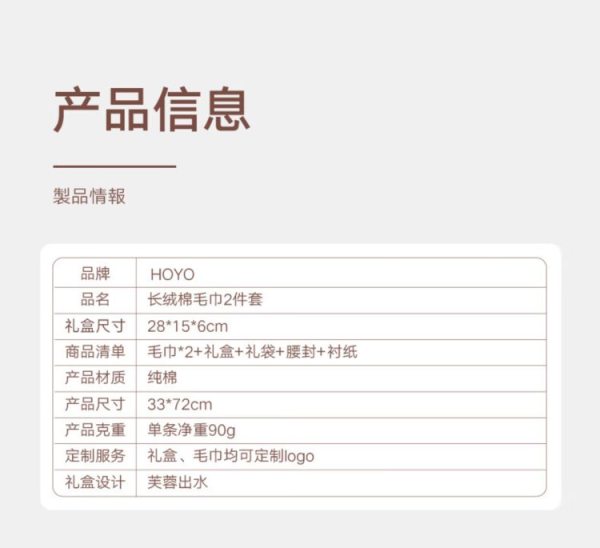 商品名称:HOYO 毛巾2509 33*72cm90g2条装 浅灰深灰(盒)