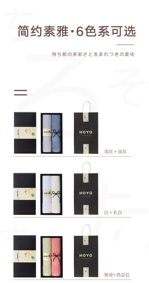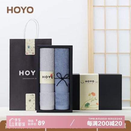 HOYO 毛巾2509 33*72cm90g2条装 浅灰深灰(盒)