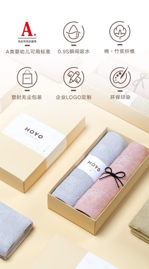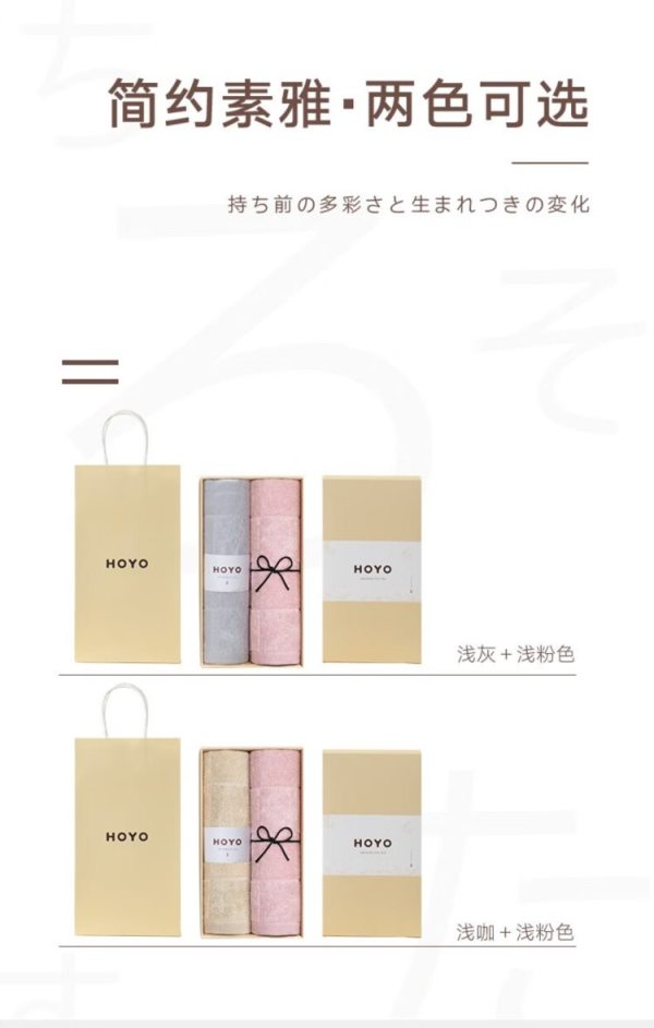 商品名称:HOYO 毛巾 JP8038 33*60cm70g2条装 浅灰+浅粉(盒)