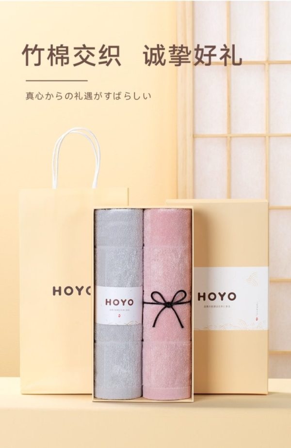 HOYO 毛巾 JP8038 33*60cm70g2条装 浅灰+浅粉(盒)