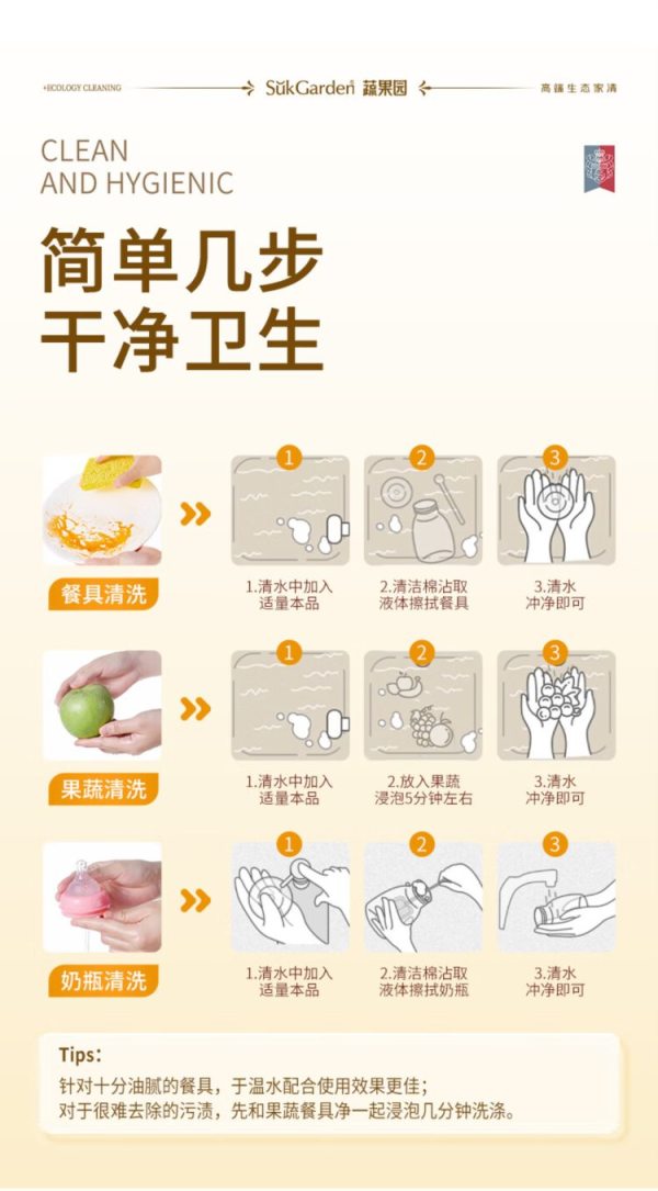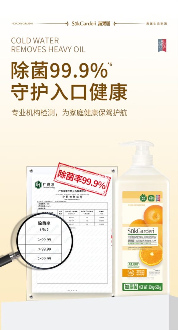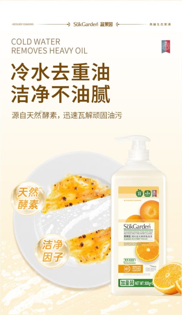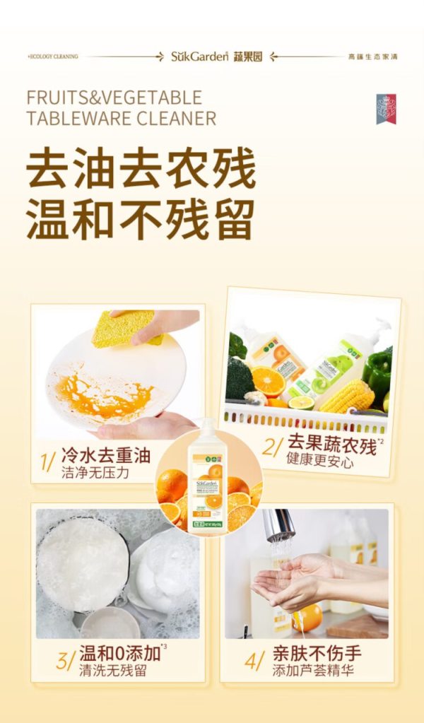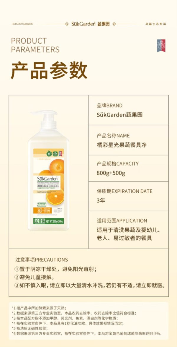 商品名称:SukGarden蔬果园橘彩星光果蔬餐具净 泵装1.3kg