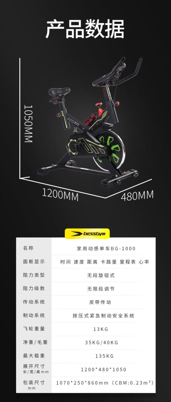 商品名称:必动(BESSGYM) BG-1000 1200*480*1050mm 动感单车 绿黑色 (计价单位:台)