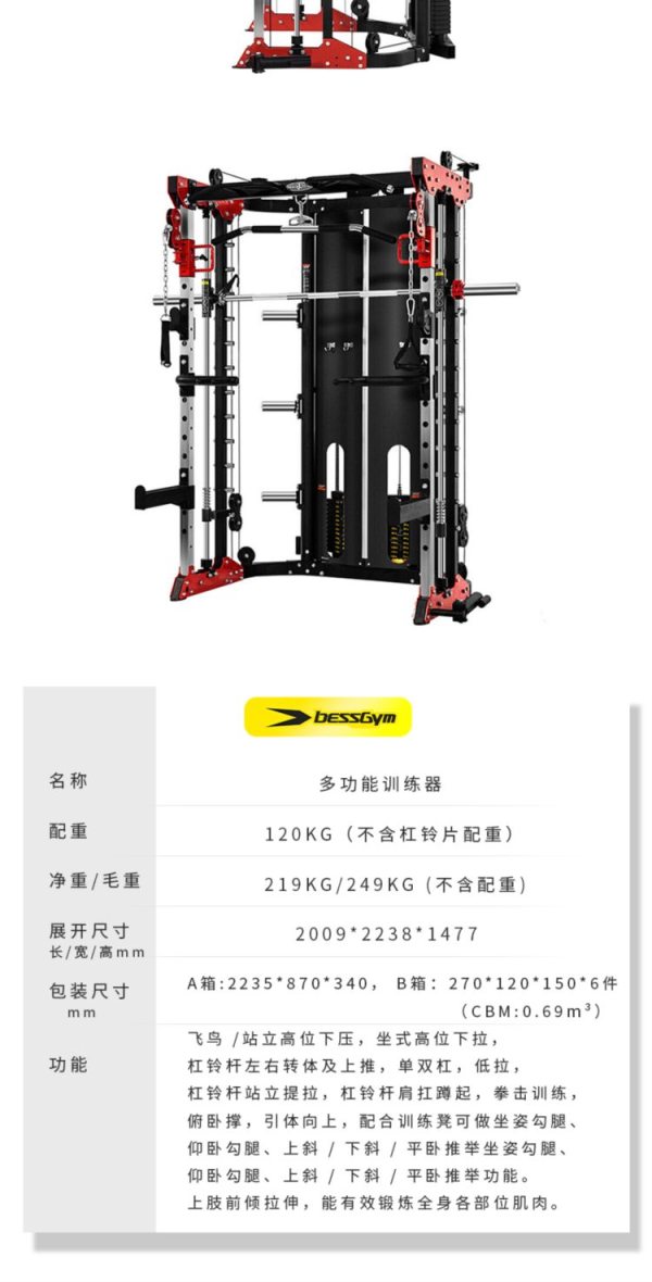 商品名称:必动(BESSGYM) BG-3058 2009*2238*1477mm 多功能训练器 (计价单位:台)