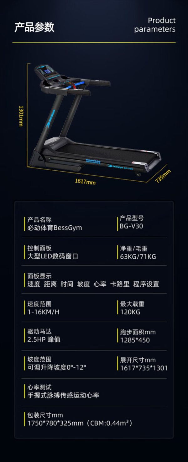 商品名称:必动(BESSGYM) BG-V30 1617*735*1301mm 跑步机 (计价单位:台)