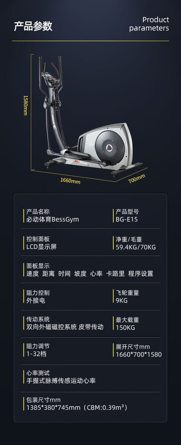 商品名称:必动(BESSGYM) BG-E15 1660*700*1580mm 椭圆机 (计价单位:台)