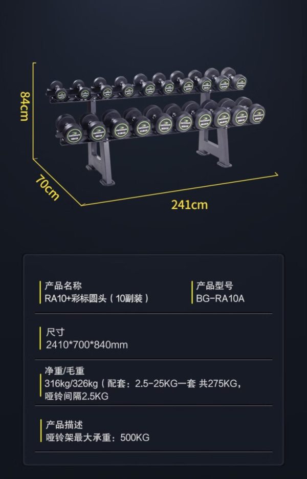 商品名称:必动(BESSGYM) BG-RA10A RA10+彩标圆头(10副装) 哑铃10件套 (计价单位:套)