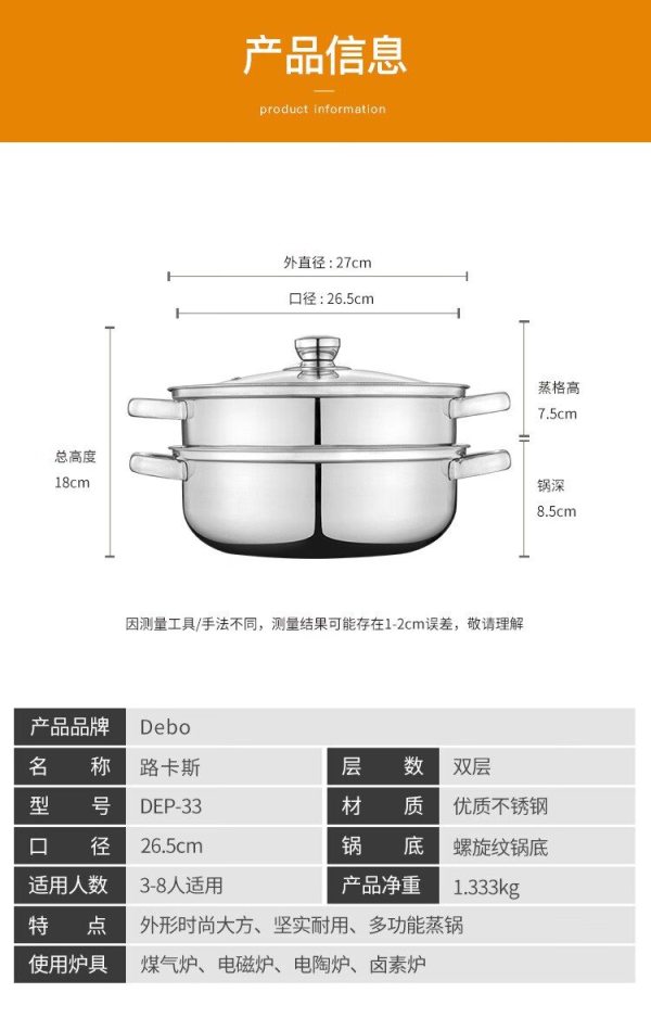 商品名称:德铂(Debo) DEP-33 26cm 201不锈钢 汤锅 (计价单位:个)