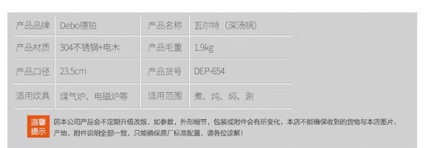 商品名称:德铂(Debo) DEP-654 24cm 304不锈钢 汤锅 (计价单位:个)