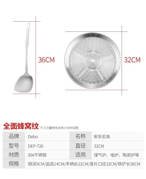 商品名称:德铂(Debo) DEP-726 32cm 304不锈钢 炒锅 (计价单位:个)