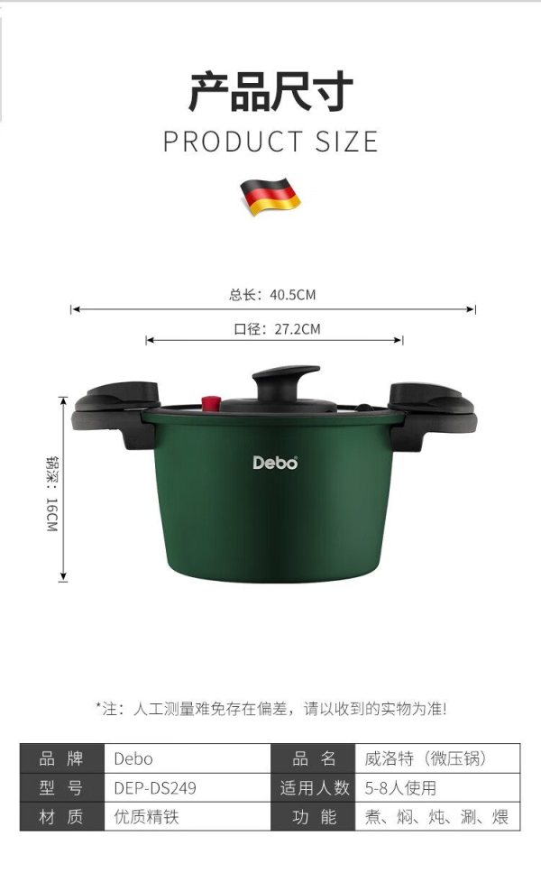 商品名称:德铂(Debo) DEP-DS330 24cm 微压锅 绿 (计价单位:个)
