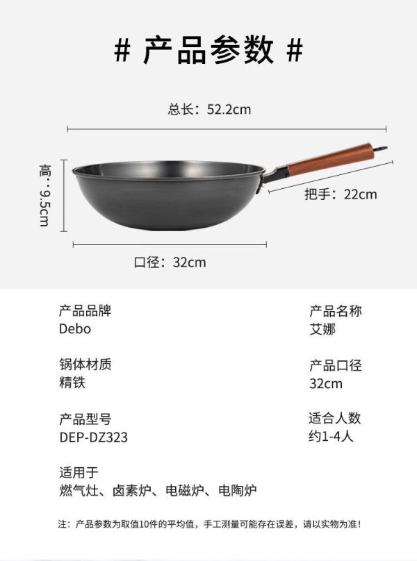 商品名称:德铂(Debo) DEP-DZ323 32cm 精铁 炒锅 (计价单位:个)