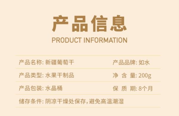 商品名称:如水 200g 新疆葡萄干 (计价单位:罐)