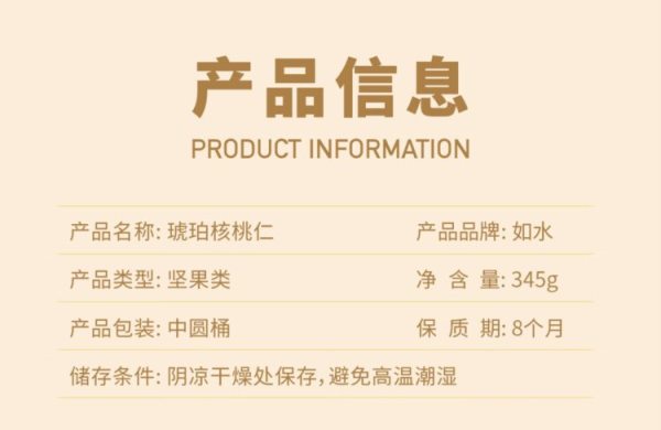 商品名称:如水 345g 琥珀核桃仁 (计价单位:桶)