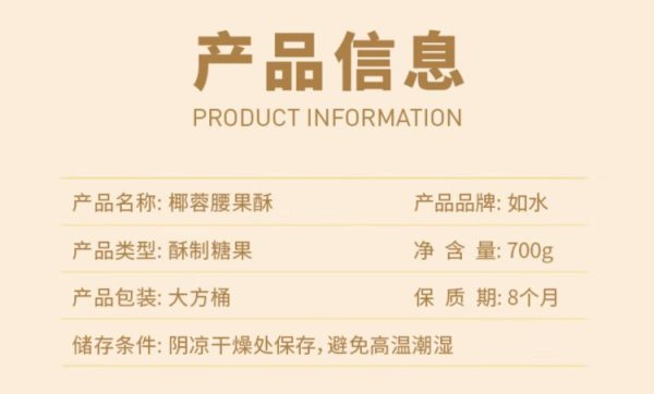 商品名称:如水 700g 椰蓉腰果酥 (计价单位:罐)