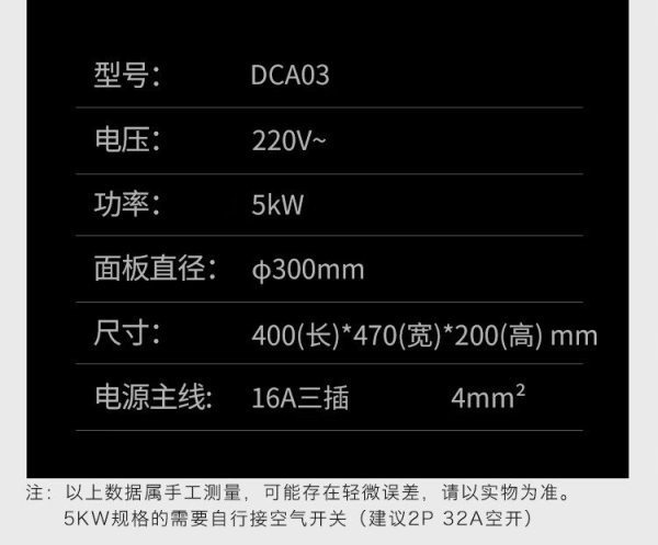 商品名称:圣托 DCA03 5kW 旋钮款+配一锅 台式凹面电磁炉 (计价单位:台)