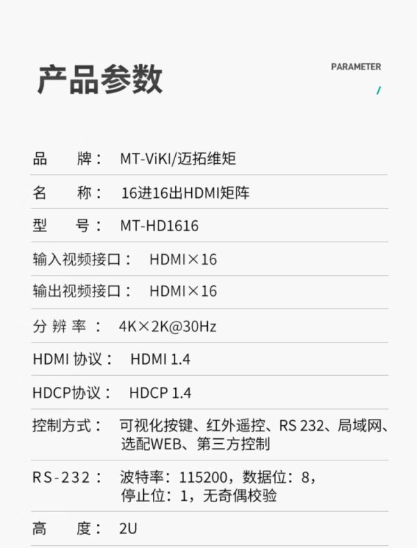 商品名称:迈拓维矩 MT-HD1616 16进16出 HDMI矩阵切换器 (计价单位:台)