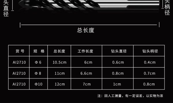商品名称:卡夫威尔 AI2710 6、8、10mm 3件套 三角瓷砖钻头 (计价单位:套)