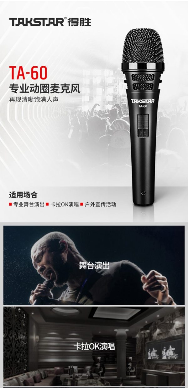得胜(TAKSTAR) TA-60 灵敏度:-51dB±3dB 专业动圈麦克风 (计价单位:只)