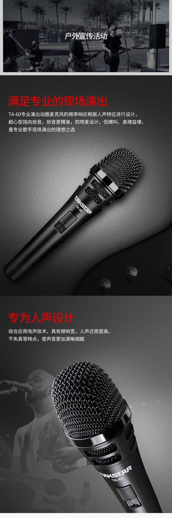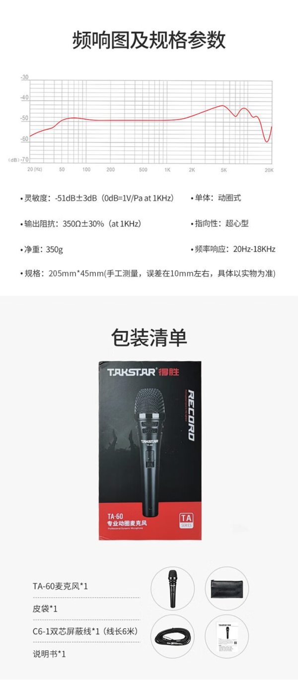 商品名称:得胜(TAKSTAR) TA-60 灵敏度:-51dB±3dB 专业动圈麦克风 (计价单位:只)
