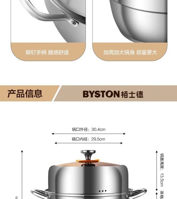 栢士德BYSTON 维丁格两层蒸锅 BST-086B 28CM