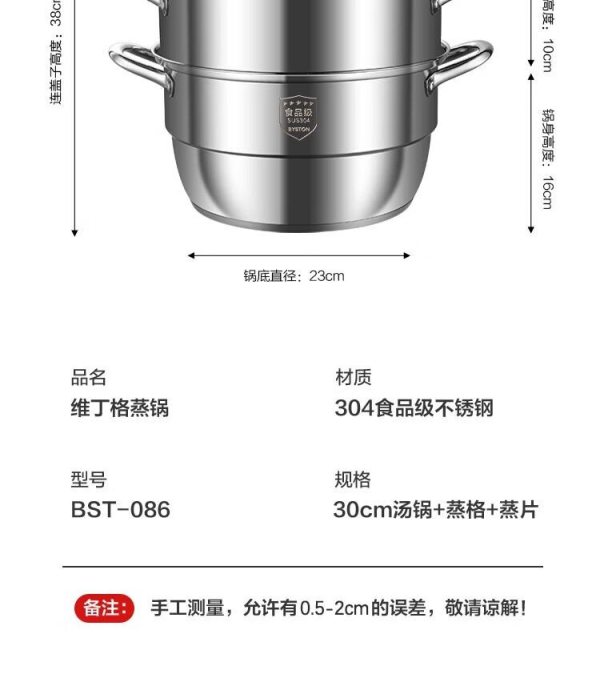 商品名称:栢士德BYSTON 维丁格两层蒸锅 BST-086B 28CM